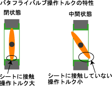 バタフライバルブの操作トルク特性を生かします。